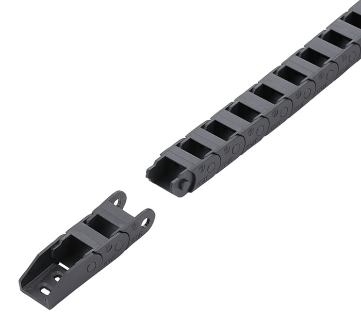 機械的傳動裝置在次數多的往復運動中,會對隨機電纜導致非常大的磨耗,塑料尼龍拖鏈的一個關緊效用就是在設施的運行中對電纜起到完備的盡力照顧效用,并能夠經過機械連署供給一定的牽萬有引力。